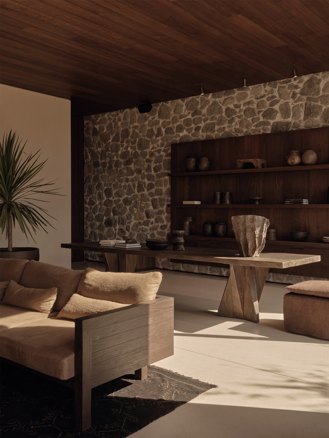 Weaving in elements of Bodrum’s landscape, our design thoughtfully mirrors the peninsula’s natural colour palette, blurring the boundaries between inside and outside. Each space is marked by our studio’s signature, from the Turkish travertine that characterises the counters in both public and private areas to the timbered elements in the villas and clubhouse, and their gentle nod to the interiors of the Ottoman era.